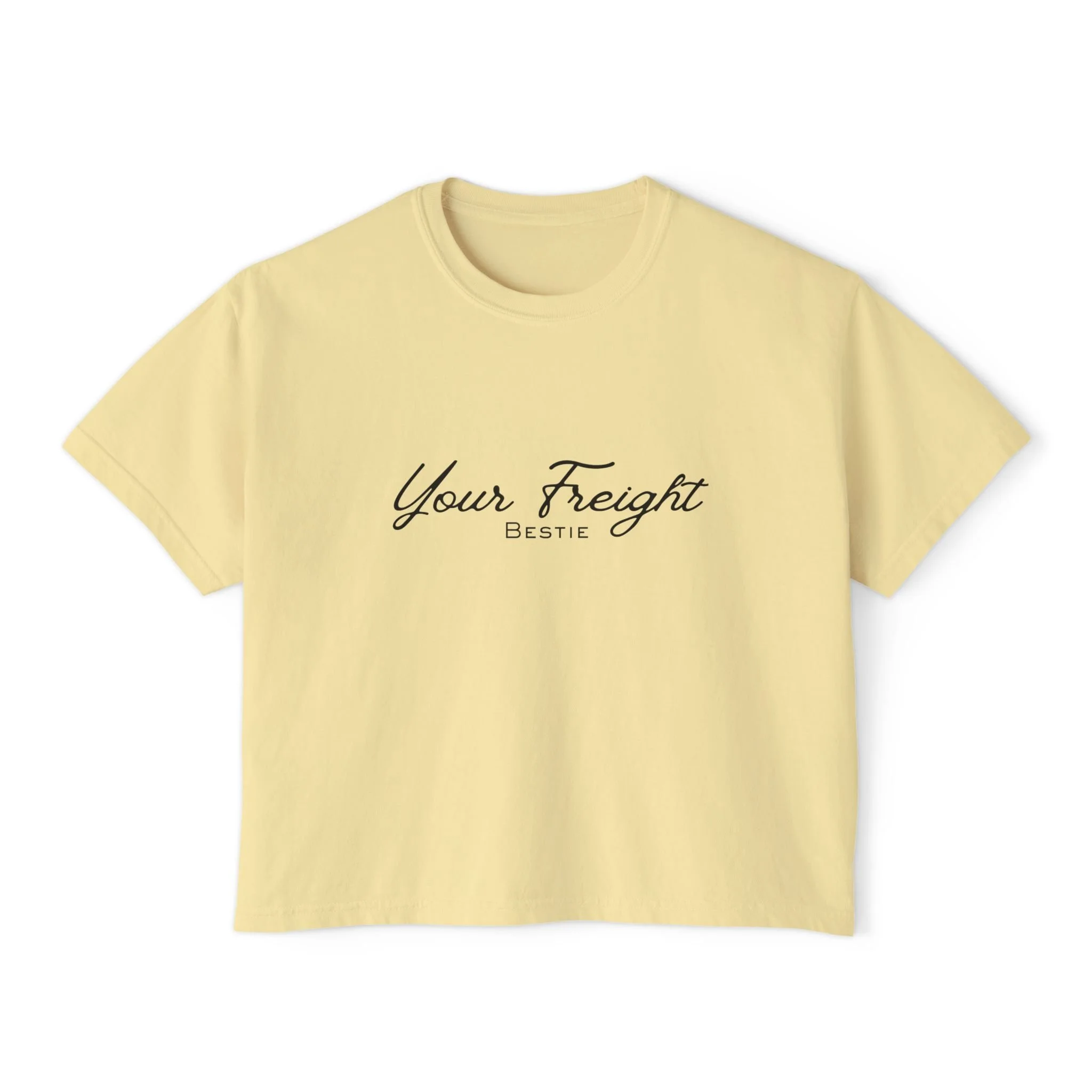 Image 1 of 21 Image 2 of 21 Image 3 of 21 Image 4 of 21 Image 5 of 21 Image 6 of 21 Image 7 of 21 Image 8 of 21 Image 9 of 21 Image 10 of 21 Image 11 of 21 Image 12 of 21 Image 13 of 21 Image 14 of 21 Image 15 of 21 Image 16 of 21 Image 17 of 21 Image 18 of 21 Image 19 of 21 Image 20 of 21 Image 21 of 21 Your Freight Bestie Women's Boxy Tee $35.00 Size: Select Size S M L XL 2XL Color: Select Color Butter Chalky Mint Ivory Orchid Peachy Add To Cart Added!